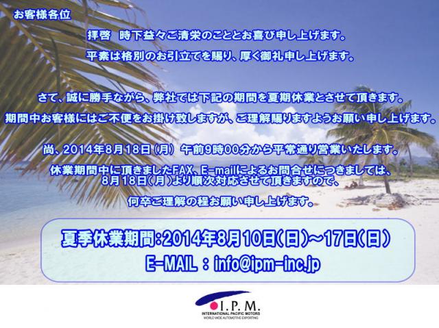 夏期休業期間:2014年8月10日(日)〜17日(日)