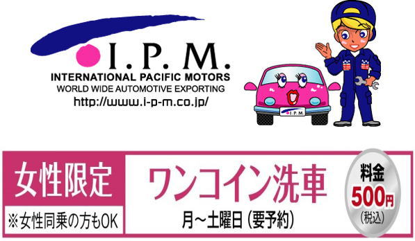 横浜市戸塚のアイピーエムでは【女性限定】でワンコイン(500円税込)手洗い洗車を行っております。