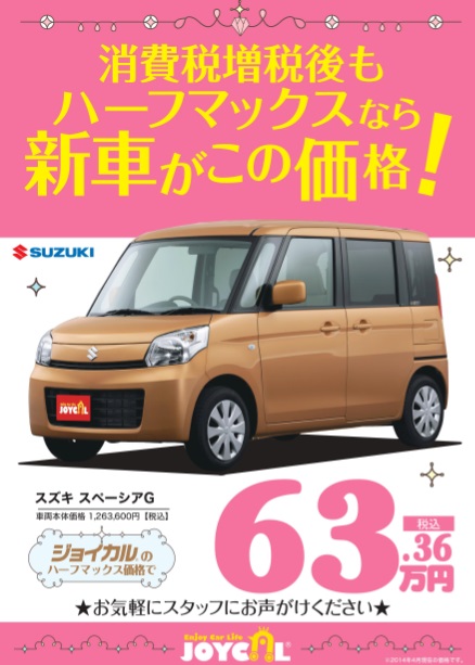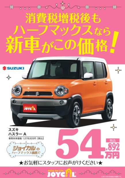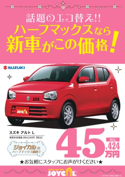 横浜市戸塚のアイピーエムからのハーフマックスでの購入の場合のスズキ車一例のご案内です。